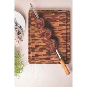 Complete your kitchen with the Tramontina Churrasco Teak Inverted Cutting Board , made to help you be practical and efficient when cutting your food. With it’s robust and resistant Teak wood material, making more precise cuts is much easier and with its inverted design it allows you to catch all the meats juices. Generally used for cutting meats vegetables or other food on.